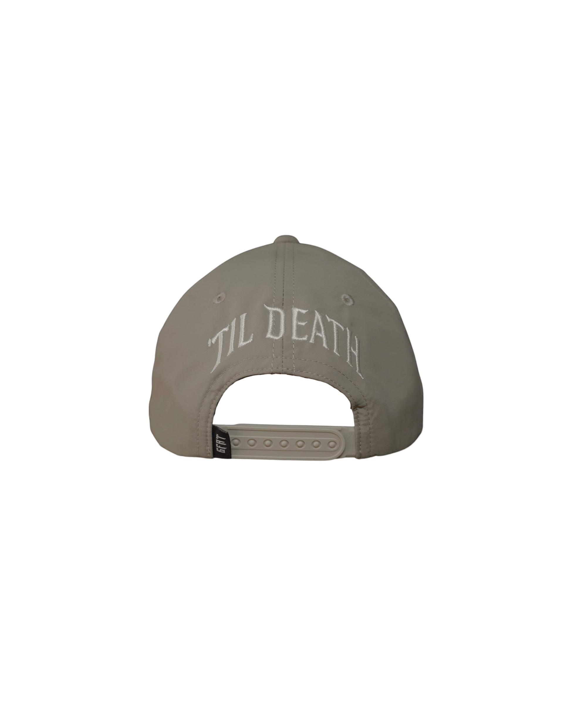 Arched ’TIL DEATH embroidery — the loyalty that never changes.